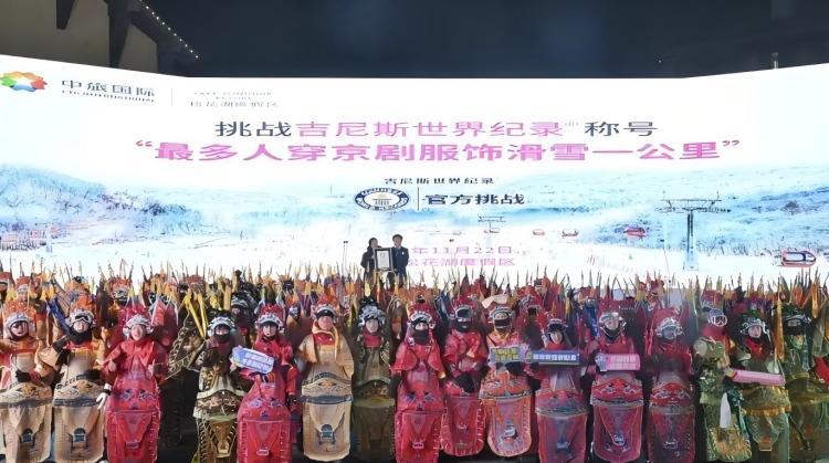 2025년 11월 21일 저녁, 길림시 중려송화호리조트에서 ‘가장 많은 사람이 경극 복장을 입고 1키로메터 스키를 탔다’는 기네스 세계 기록 도전이 성공적으로 이뤄졌다. 266명의 참가자가 화려한 경극 복장을 입고 새하얀 눈밭을 질주하며 국가의 전통문화와 겨울 스포츠의 만남을 선보이면서 새로운 세계 기록을 갱신했다.