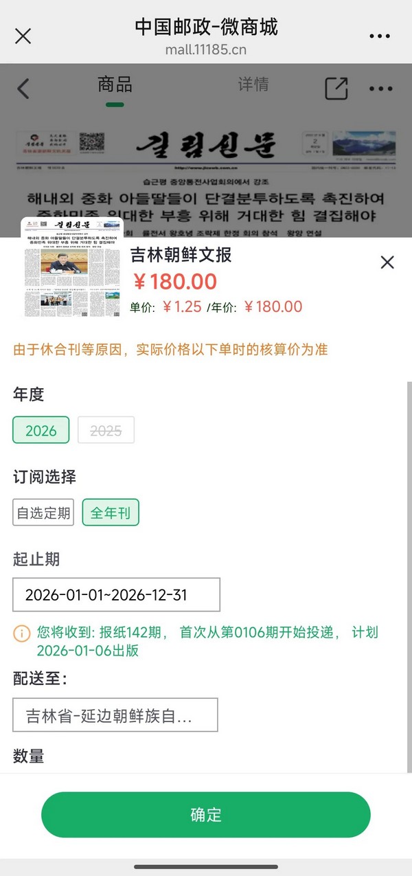 刊名:吉林朝鲜文报 刊号:CN22-0030/-CH 邮发代号:11-13 订阅地点:当地邮政局 订阅咨询:权勇 电话:15304312665 全年定价:180元 |
