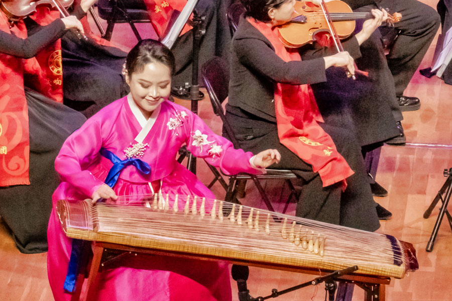 음악회는 교향곡 <춘절 서곡>으로 막을 열었는데 남녀 4중창 〈붉은 해 변강 비추네〉, 가야금 독주 <옹헤야>, 남성 독창 <황하송>, 교향악<나의 조국>, 녀성독창〈연변에 오신 것을 환영해요〉, 녀성 독창 <잊을 수 없는 그날>, 합창 <나와 나의 조국>등 14개 다양한 문예종목들로 꾸며졌다.