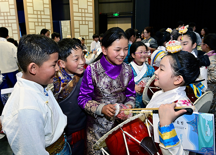 행사에서 연길시 중앙소학교와 북산소학교 학생들은 멀리서 온 ‘설산의 아기독수리’들에게 장고춤 〈작은 장고에 행복의 꿈〉과 상모춤 〈붉은 해 변강을 비추네〉 등 무용과 〈봄의 아리랑〉과 〈연변에 오신 것을 환영합니다〉는 노래를 불러주었다. 그후 시가쩨에서 온 사생들은 연길 사생들에게 장족 전통무용인 곽좡무(锅庄舞)를 공연했다. 그들은 색상이 산뜻한 장족 전통복장을 입고 경쾌한 장족 음악에 맞춰 춤을 추었고 또한 조선족 어린이들과 함께 무대에 올라 즐거운 시간을 보냈다. 그들은 맑은 노래소리와 아름다운 선률과 함께 서로의 민족무용 풍격을 경험했으며 손에 손잡고 민족대단결의 행복과 아름다움을 함께 만긱했다.
