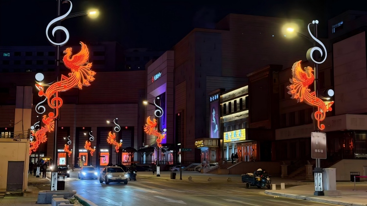 해가 지면, 장춘시 조양구 중경로와 문화거리에 설치된 ‘봉무구천’(凤舞九天) 조형의 가로등이 하나씩 밝아진다. 그 우에 설치된 약동적인 음악 기호들은 따뜻한 등불 속에서 활기를 띠며 복고적인 거리 풍경과 조화를 이룬다. 깨끗이 정돈된 밤거리를 걷다보면 커피의 진한 향기와 케익의 달콤함, 그리고 길거리 점포들에서 피여 나오는 따뜻한 열기는 사람들로 하여금 걸음마다 거리의 독특한 안락함을 느낄 수 있게 하며 문예와 향토의 융합을 만긱하게 한다. 한때 세월의 흔적이 가득했던 이 거리는 이제 문화, 상업, 관광이 심층적으로 융합된 도시의 새로운 랜드마크로 화려하게 변모했다.