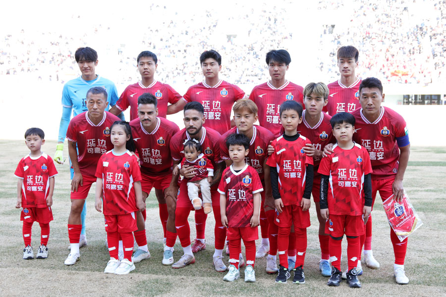 제5라운드 대 녕파구락부전에 선발로 나선 연변팀 선수들. /사진 김파기자