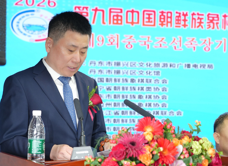 축사를 하고있는 행사주최측 단동시조선족장기협회의 최상화 회장